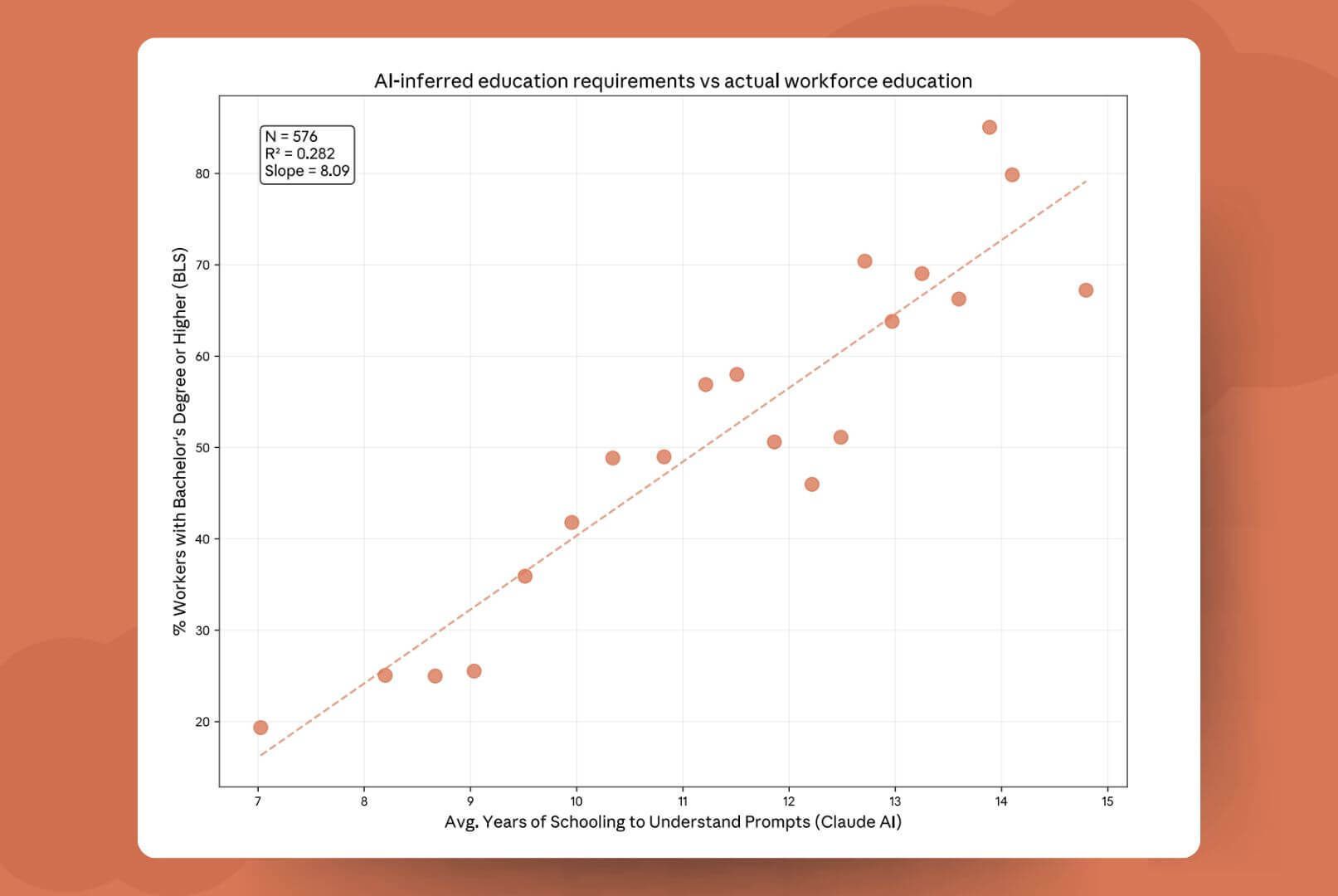 The data agrees. Anthropic published a chart last month that shows the education level of AI responses matching the education level of the user's input with a 0.92 correlation.