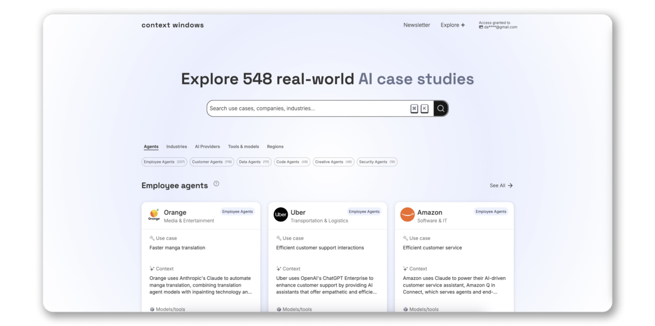 If youβre a consultant, leading internal AI initiatives, or just exploring possibilities β contextwindows.ai will save you many hours of research and help you make smarter decisions backed by real-world evidence.