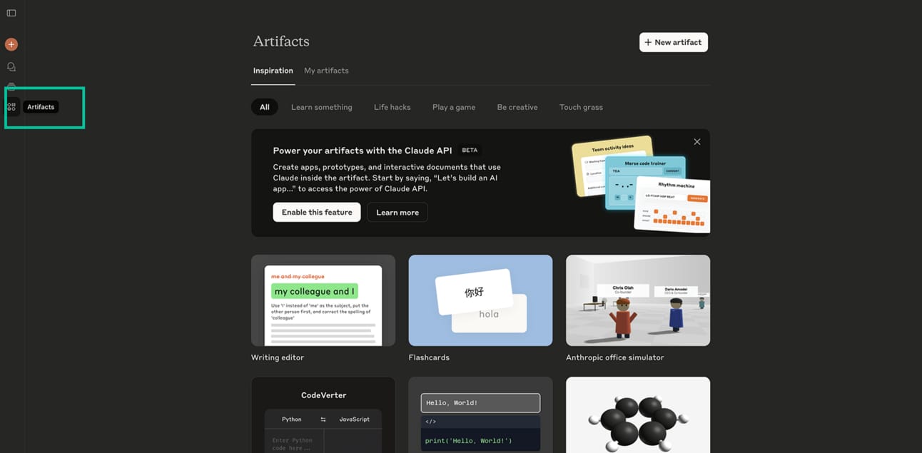 To get started creating Artifacts, just head over to Claudeβs dedicated space from where you can browse or customise artifacts created by others, or build your own app from scratch:
